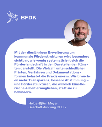 Strukturförderung ermöglicht in den Freien Darstellenden Künsten nachhaltiges Arbeiten, bessere Sichtbarkeit und tragfähige Kooperationen. Zu diesem Ergebnis kommt das Papier „Verantwortung übernehmen #2 Strukturen für die Kunst“, das jetzt vom Bundesverband Freie Darstellende Künste (BFDK) veröffentlicht wurde. Die positive Wirkung längerfristiger Strukturförderung konnte bereits die Evaluation des Programms „Verbindungen fördern“ bestätigen. Das Programm läuft Ende 2025 aus.